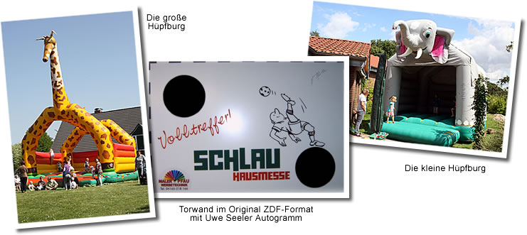 Zwei Hüpfburgen, die Torwand oder das
